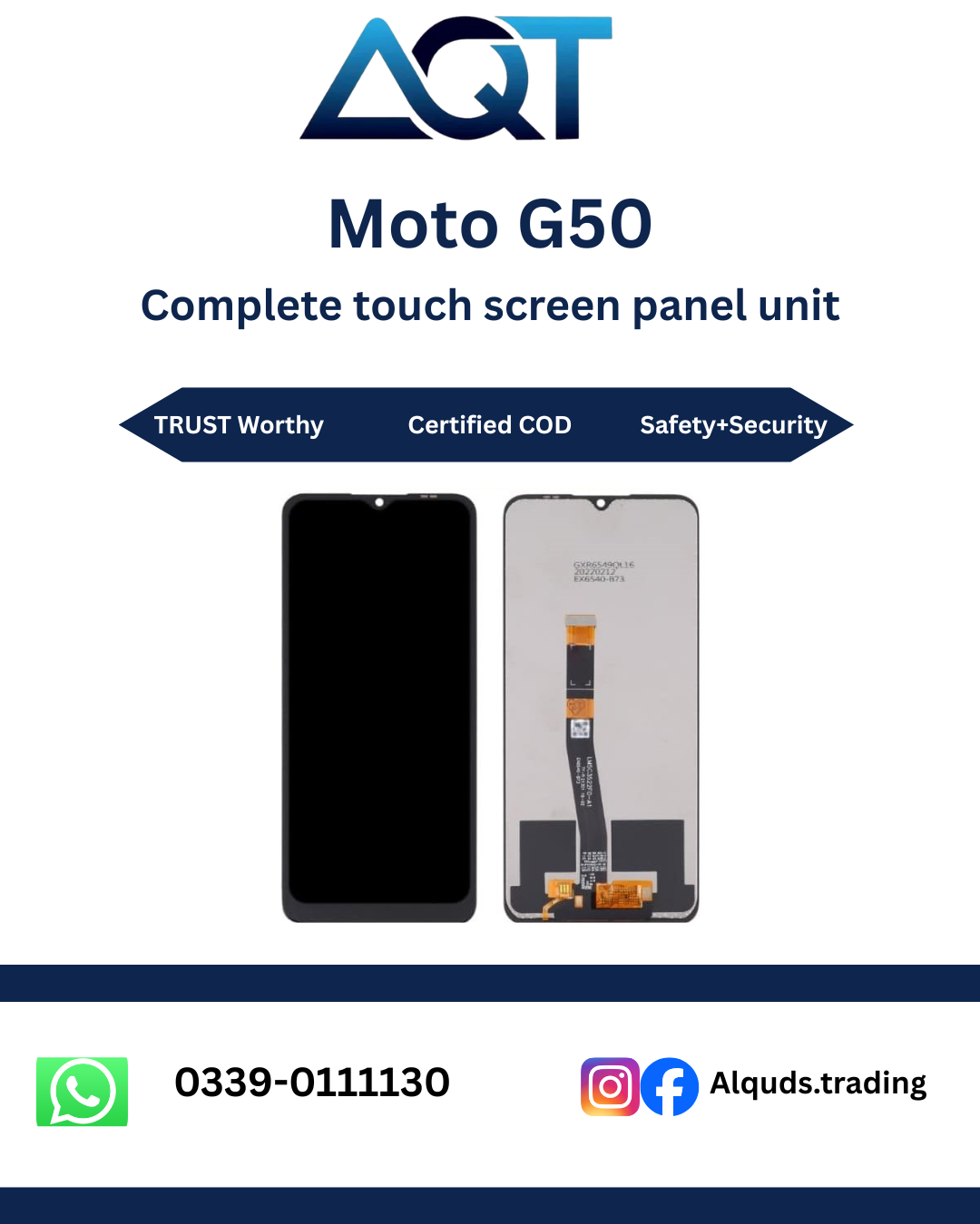Moto G50 LCD panel replacement with clear HD display and smooth touch performance. Perfect for repairing broken, cracked, or non-responsive screens, this LCD restores original brightness, color accuracy, and touch response. Fully tested and compatible with Motorola Moto G50, suitable for mobile repair shops and individual replacement. Fast delivery available across Pakistan.